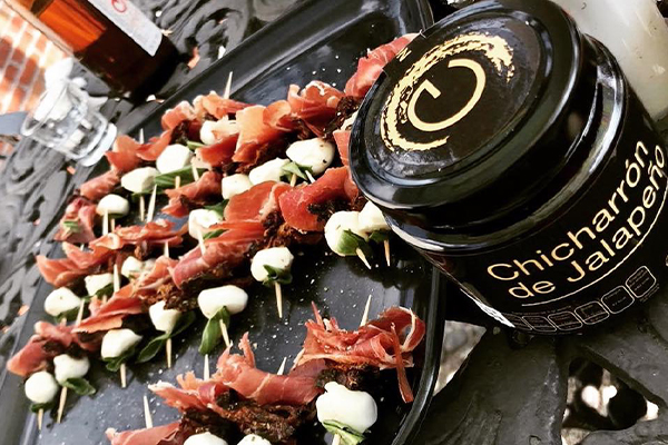 Recetas_0000_12.- brocheta de jamon serrano,chicharron de jalapeño, albahaca y mozzarella